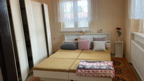Ponúkame na predaj štvorizbový rodinný dom pri hlavnej ceste v obci Hrušovany, okres Topoľčany. Dom stojí na pozemku o rozlohe 700 m2. Skolaudovaný bol v roku 1965 . Stavba je tehlová, strecha pôvodná z klasickej škridle. V dome sa nachádzajú 4 veľké priestranné izby, kuchyňa, chodba a komora a kupelňa. Dve izby sú priechodné, je však možnosť prerobiť dvere priamo z chodby. Z komory vedú schody na povalu. Posledná rekonštrukcia prebehla v roku 2015, kedy boli vymenené plastové okna a dvere. Dom je napojený na obecnú kanalizáciu. Vodovod je napojený na studňu priamo na pozemku, je možnosť pripojenia na obecný vodovod. V dome sa kúri plynom, kotol bol vymenený pred 7 rokmi.